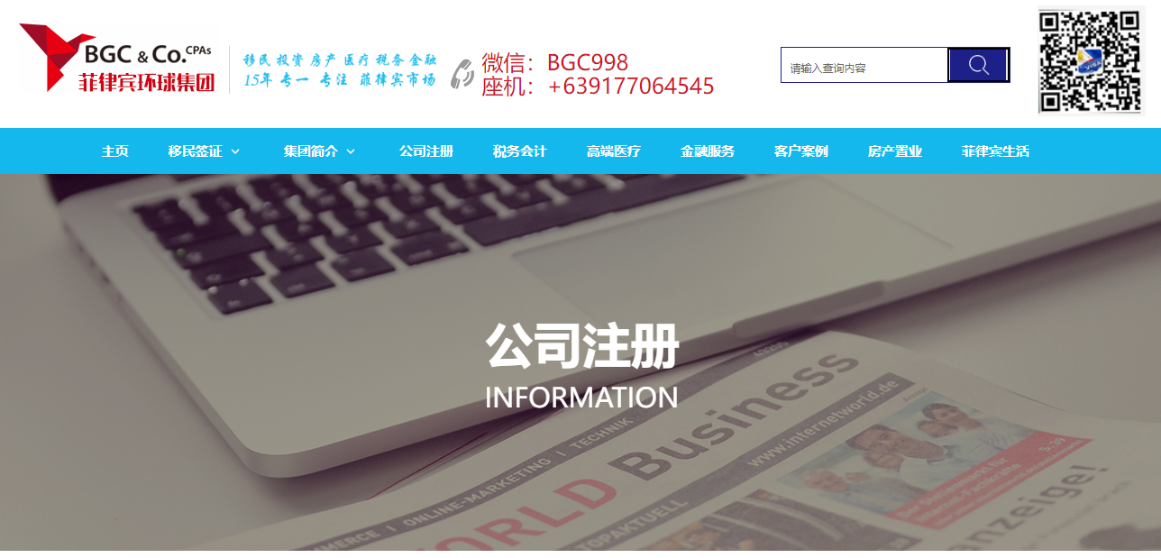 菲律宾环球BGC会计师事务所由多名菲律宾注册会计师联名在菲律宾makati创建,是菲律宾目前较有影响的华人会计师事务所之一。经菲律宾政府批准,依法承办注册会计师业务,以及移民的资格。经过多年的发展,菲律宾环球BGC会计师事务所在业务规模与范围,执业质量,和社会形象等方面都取得了巨大成绩。