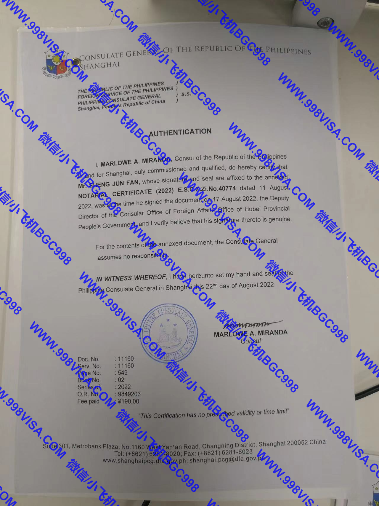 最新菲律宾认证书,8月22号入菲律宾领馆认证