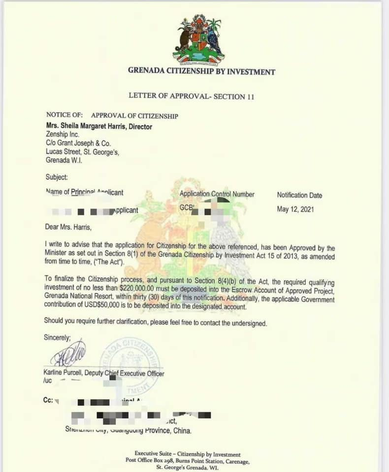 恭喜杜小姐成功获得 格林纳达入籍项目2021*5