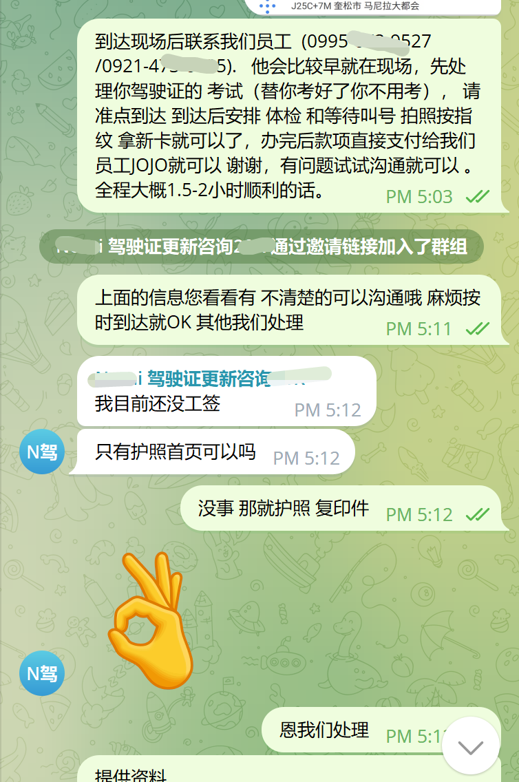 费用:XXX比索₱时间:2个小时左右排队地点:通知预约指定的lTO内注意:过期两年内的可以处理,请勿穿拖鞋短裤,预约赶时间准时到达,在现场等待不要离开,手机保持通信畅通。没有驾驶证原件+5K 期间的换证或者过期需要的考试我们安排人代考流程: 发驾驶证照片咨询,确认办理,预约时间,带上材料前往lTO, 体检,等待叫号去按指纹 拍照 签字 领取驾驶证,完成流程。